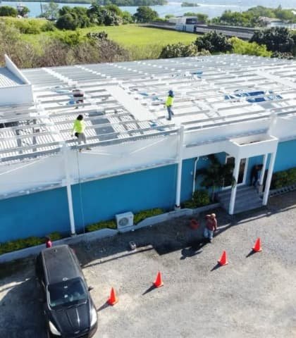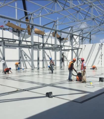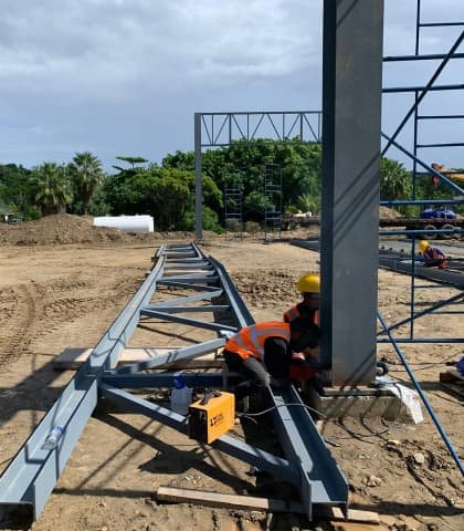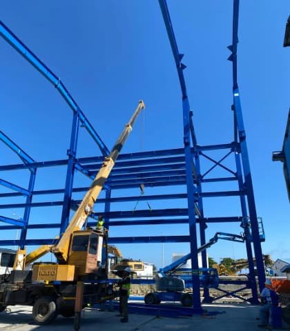 Suministro y montaje de estructura metálica y cubierta para gimnasio frente al mar, adaptada a condiciones climáticas extremas.
