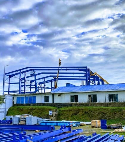 Diseño y montaje de hangar industrial con estructura metálica modular, adaptable a usos logísticos y operativos.